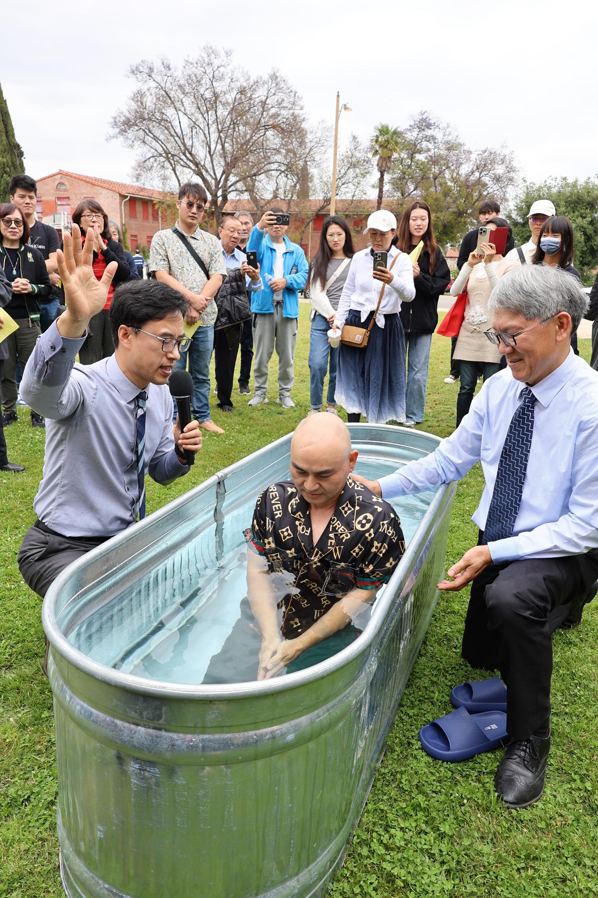 5月26日主日中午,教會在前草坪為一位弟兄與一位姐妹舉行浸水禮,見證他們歸入基督名下,我們一同為他們祝賀歡喜。以下為當日留影: