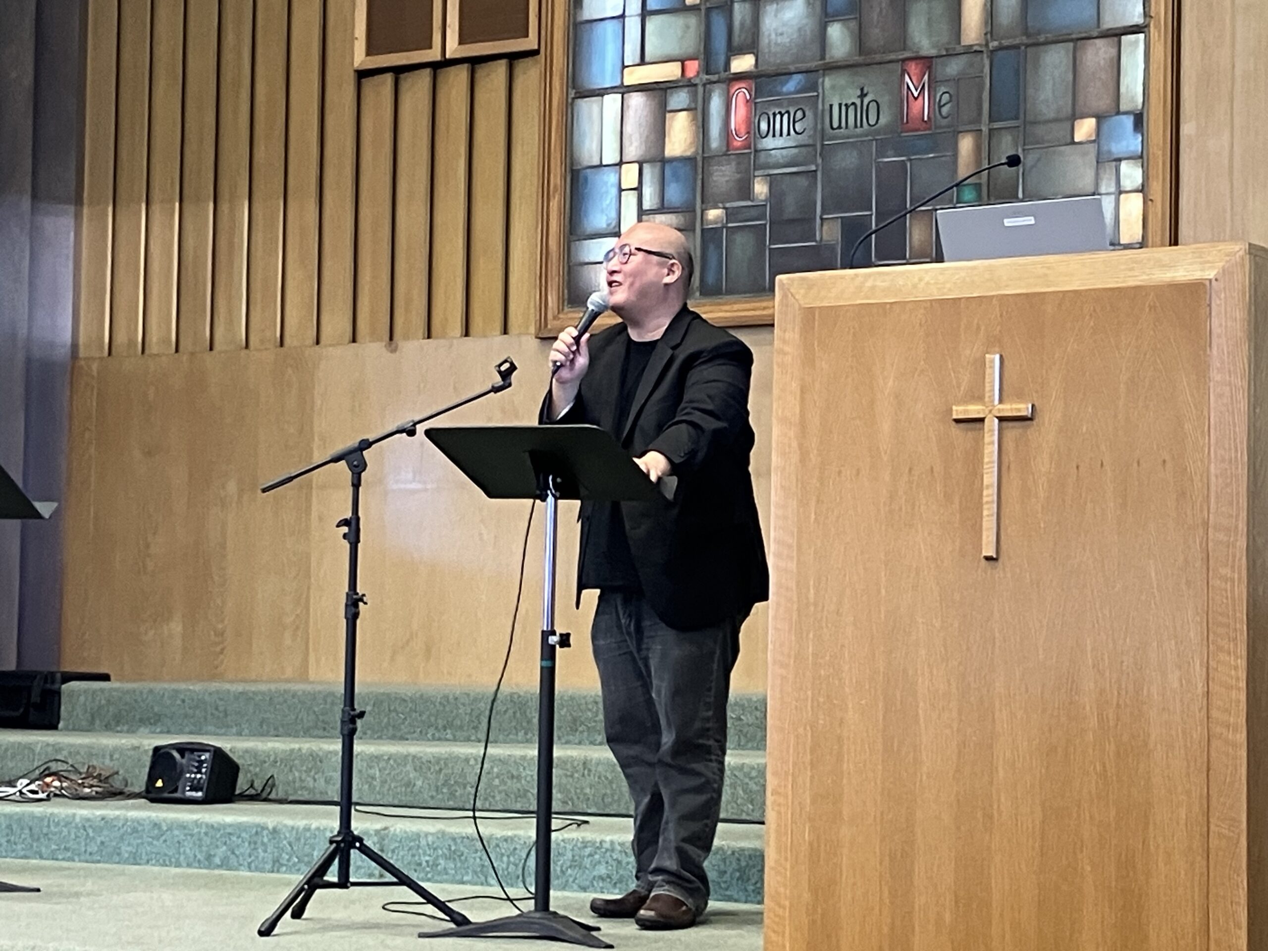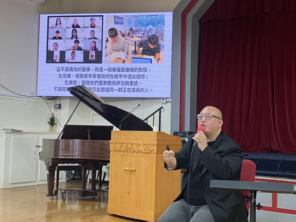 3/15/26 主日有多項值得囘憶的場合: 賴俊甫宣教士來訪(正道校友,東歐宣教士,前讚美之泉團員), 在台語堂崇拜中領詩歌與見證;而甫從台灣返回的蘇文隆牧師也在崇拜中證道”從腓利門書看人際關係的建立”。台語堂詩班的獻詩也為崇拜增色許多。而在午餐之後的華語堂,賴宣教士也和分享他在東歐多年的宣教事工,主對他的醫治,及現在在南台灣高雄的開拓。